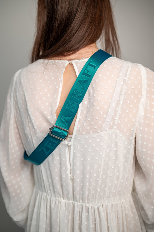 Plecu siksna ar logotipu Zilganzaļa