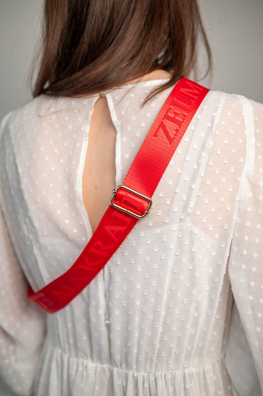Plecu siksna ar logotipu Sarkana