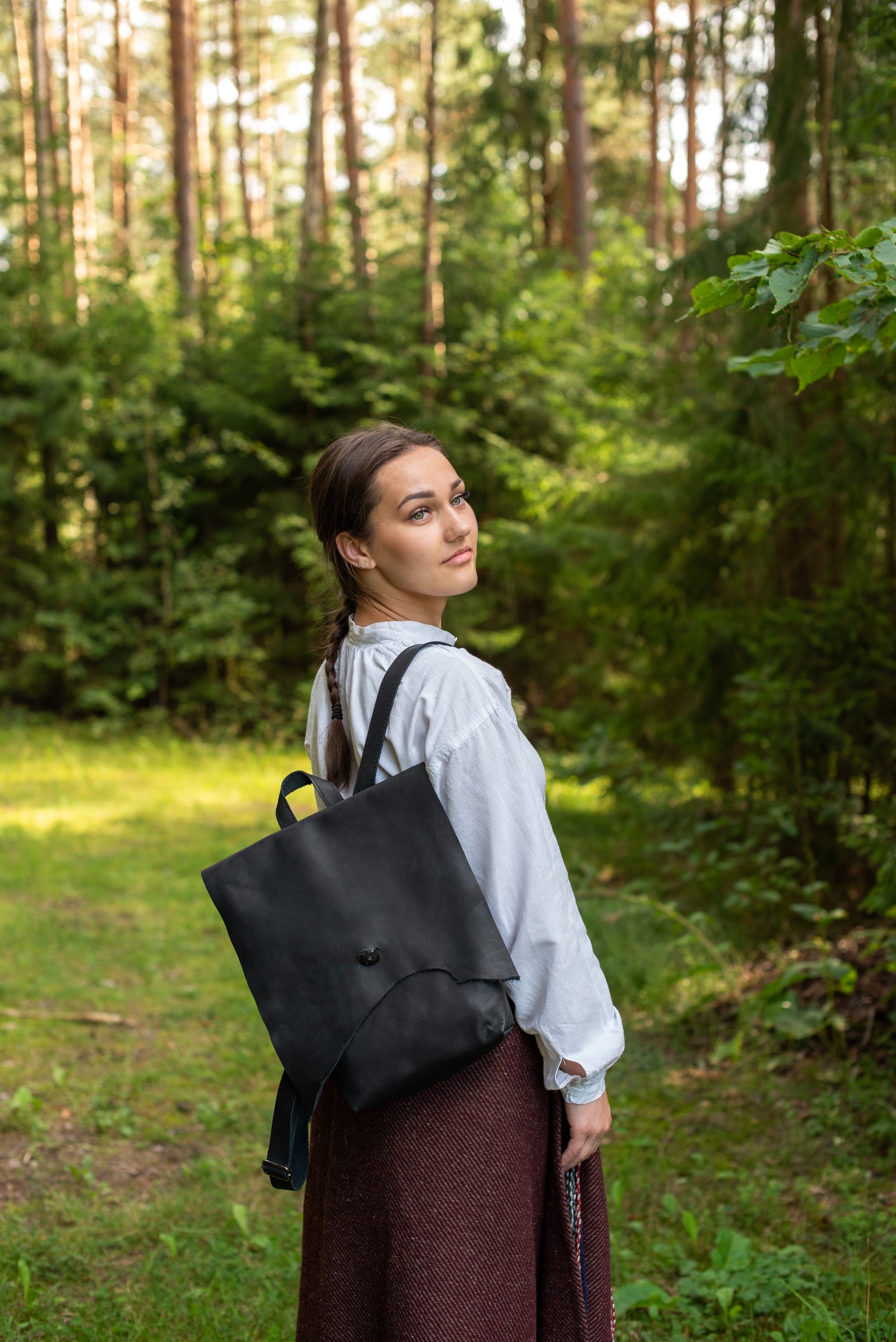 Our Leather Messenger Bag features a distinct widened hem and a choice of a knot or button clasp, adding a touch of sophistication to your ensemble.