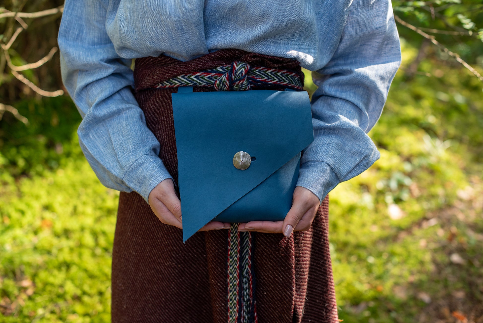 Our Leather Messenger Bag features a distinct widened hem and a choice of a knot or button clasp, adding a touch of sophistication to your ensemble.