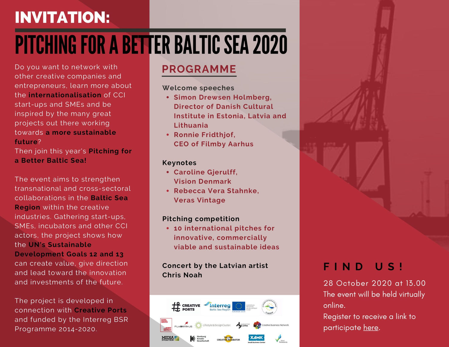 The pitching competition will consist of 10 international pitches by Danish, Latvian, Estonian and German entrepreneurs in which they will pitch their creative ideas on how to make the Baltic Sea Region a better place to an international jury of experts.
