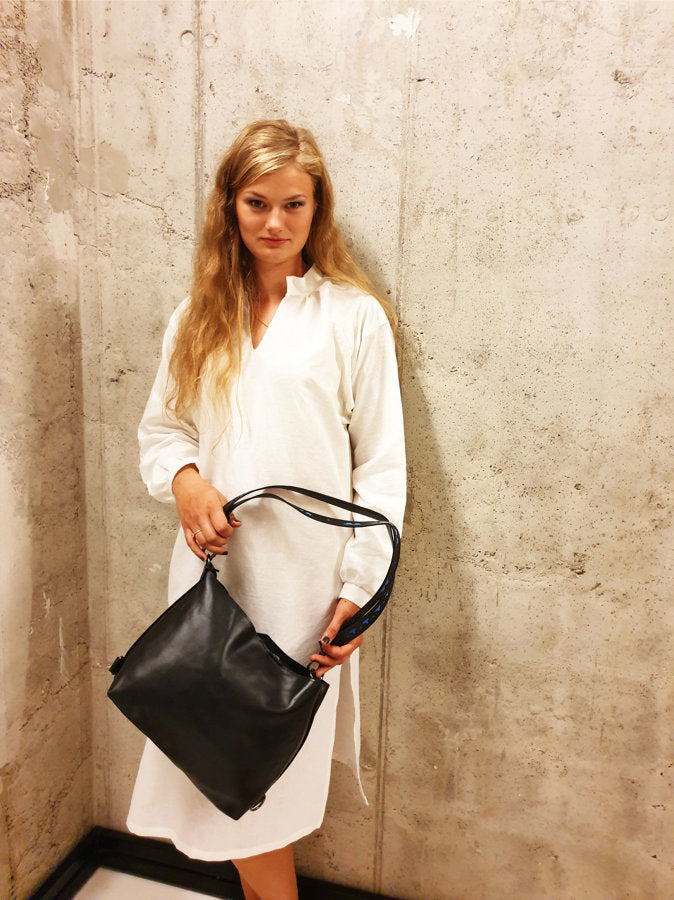 Laiks darbnīcā paskrien nemanot. Tiek izvēlēts somas modelis un pieskaņots materiāls. Racionāli novietoti lekāli uz materiāla un tad sākas griešana. Detaļu savienošana un sašūšana. Darba process ir atbildīgs un jāveic ar precizitāti, jo detaļu labot vai pārgriezt izdodas reti. Tas ir izaicinājums, un tā izpilde vienmēr liek justies labi.
