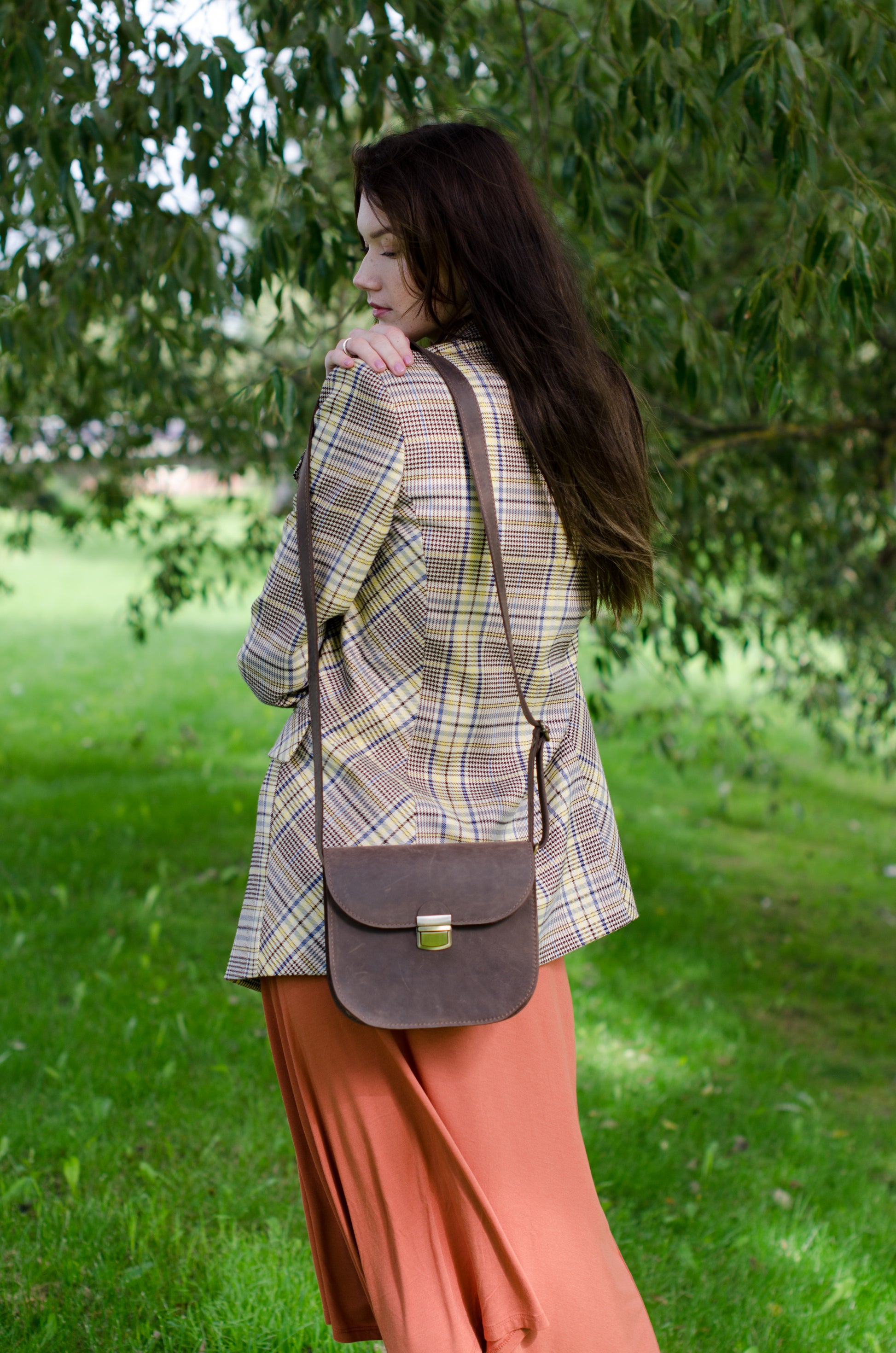 Zelma Kraft klasiska piegriezuma Saddle soma ir radusies no zirgu pajūgā izmantojamo somu dizaina. Šī izsmalcinātā soma apvieno seno laiku šarmu ar modernu funkcionalitāti, padarot to par pievilcīgu aksesuāru katrā sezonā. Tīrās līnijas un minimālistiskais siluets nodrošina tās mūžīgo pievilcību, bez piepūles papildinot jebkuru apģērba vai stila izvēli.