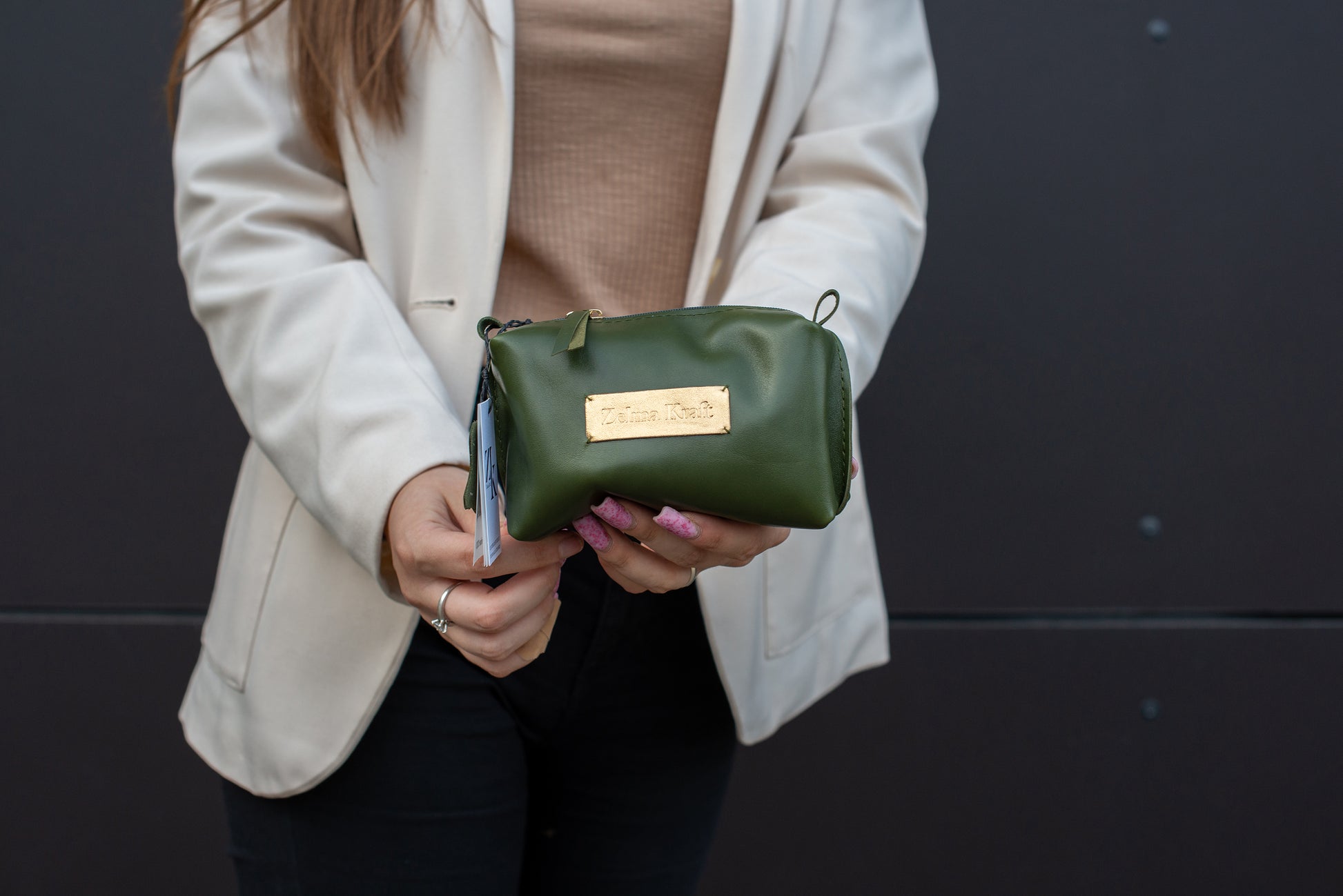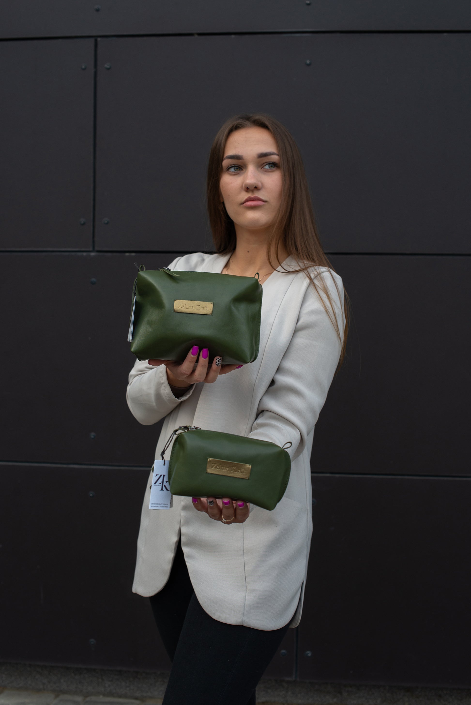 Iepazīstieties ar Zelmas Kraft rokām darināto ādas kosmētikas maku. Izgatavots no augstākās kvalitātes ādas un metāla, tam ir rāvējslēdzēja aizdare un viena iekšējā kabata. Kosmētikas maks ir kompakts un stilīgs, ideāli piemērots jūsu lietu/mantu organizēšanai. Izbaudiet greznību un funkcionalitāti vienā elegantā aksesuārā.