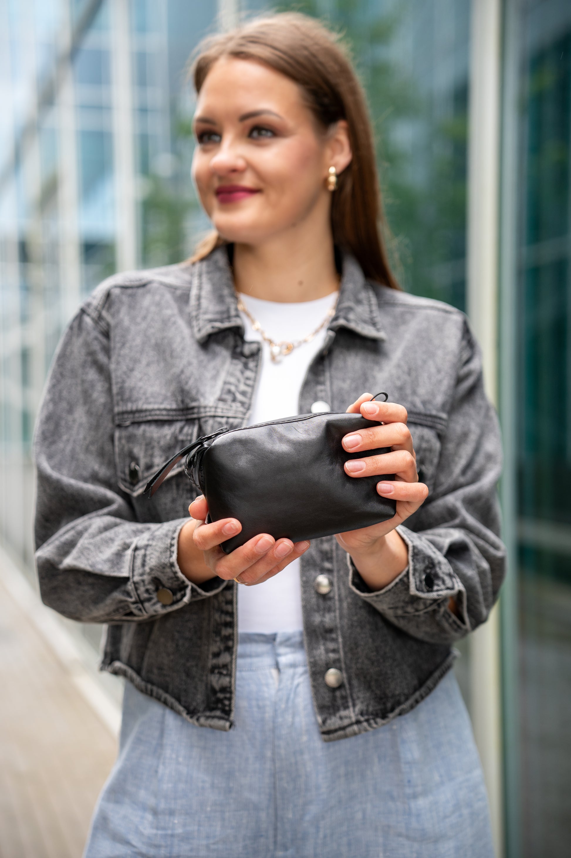 Iepazīstieties ar Zelmas Kraft rokām darināto ādas kosmētikas maciņu/organizatoru. Izgatavots no augstākās kvalitātes ādas un metāla, tam ir rāvējslēdzēja aizdare un viens iekšējais nodalījums. Maks ir kompakts un stilīgs, ideāli piemērots jūsu kosmētikas organizēšanai. Izbaudiet greznību un funkcionalitāti vienā elegantā aksesuārā.