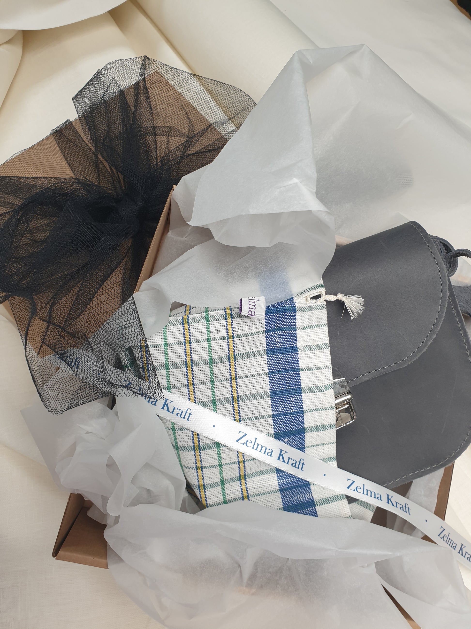 Auduma maisiņš (kokvilna 51%, lins 49%), lai nodrošinātu pareizu ādas izstrādājumu uzglabāšanu un transportēšanu.