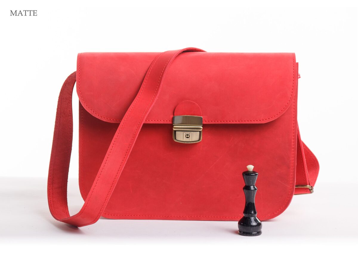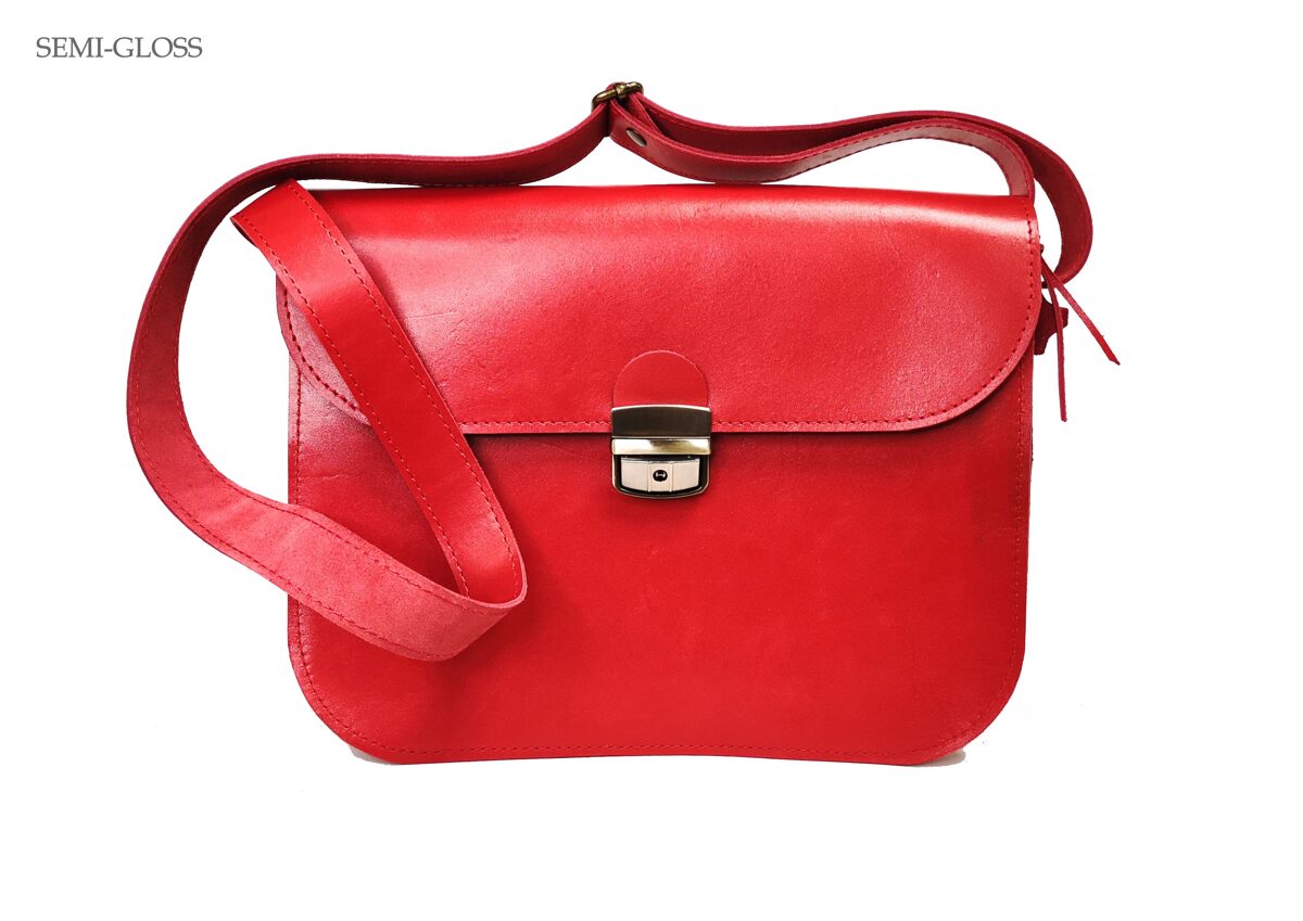 - Pusspīdīga - ādas virsmu klāj lakas pārklājums, kas nodrošina somas nemainīgo izskatu lietošannnas laikā