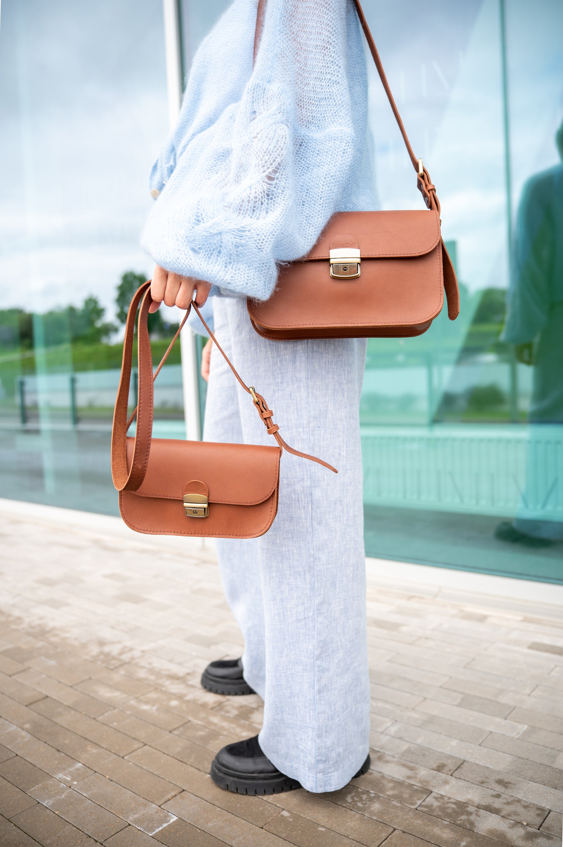 Laiks darbnīcā paskrien nemanot. Tiek izvēlēts somas modelis un pieskaņots materiāls. Racionāli novietoti lekāli uz materiāla un tad sākas griešana. Detaļu savienošana un sašūšana. Darba process ir atbildīgs un jāveic ar precizitāti, jo detaļu labot vai pārgriezt izdodas reti. Tas ir izaicinājums, un tā izpilde vienmēr liek justies labi.