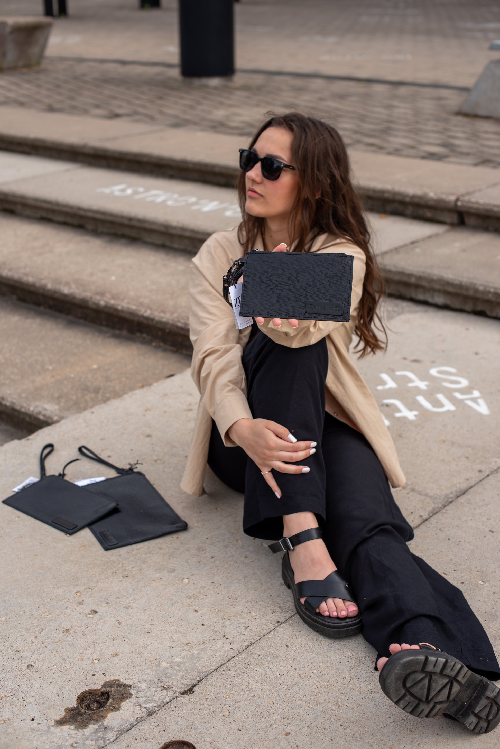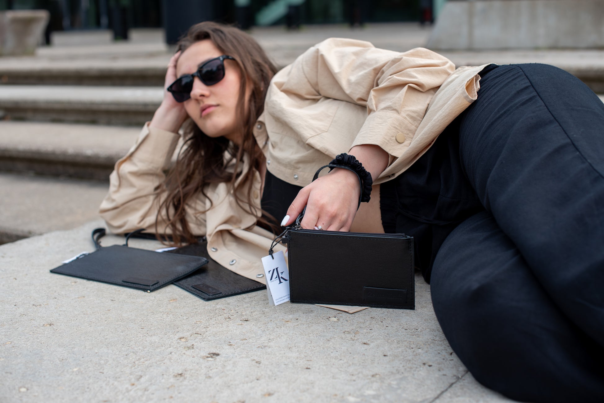 Rokas makam ir divas ārējās kabatas ar rāvējslēdzēju. Augšējās kabatas iekšpusē ir divas papildus kabatas kredītkartēm un sīkumiem. Īsā siksna nodrošina maka nēsāšanu uz plaukstas locītavas.