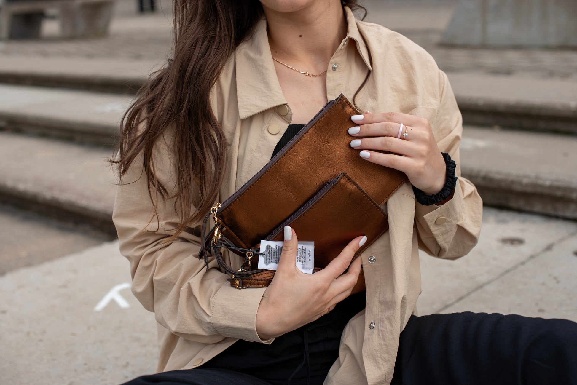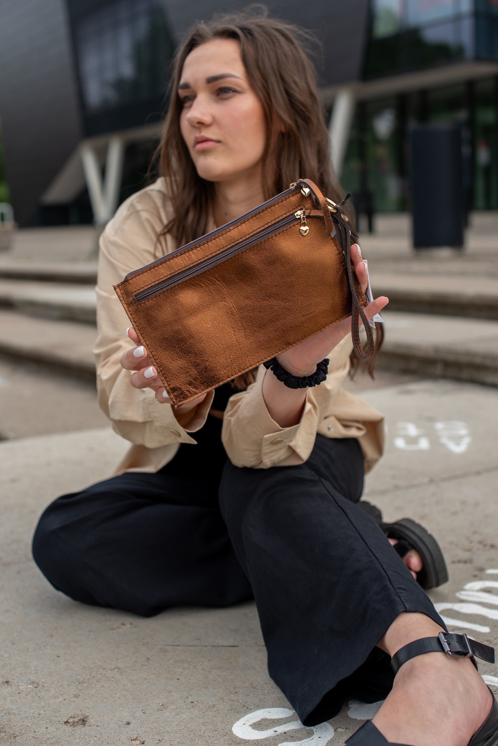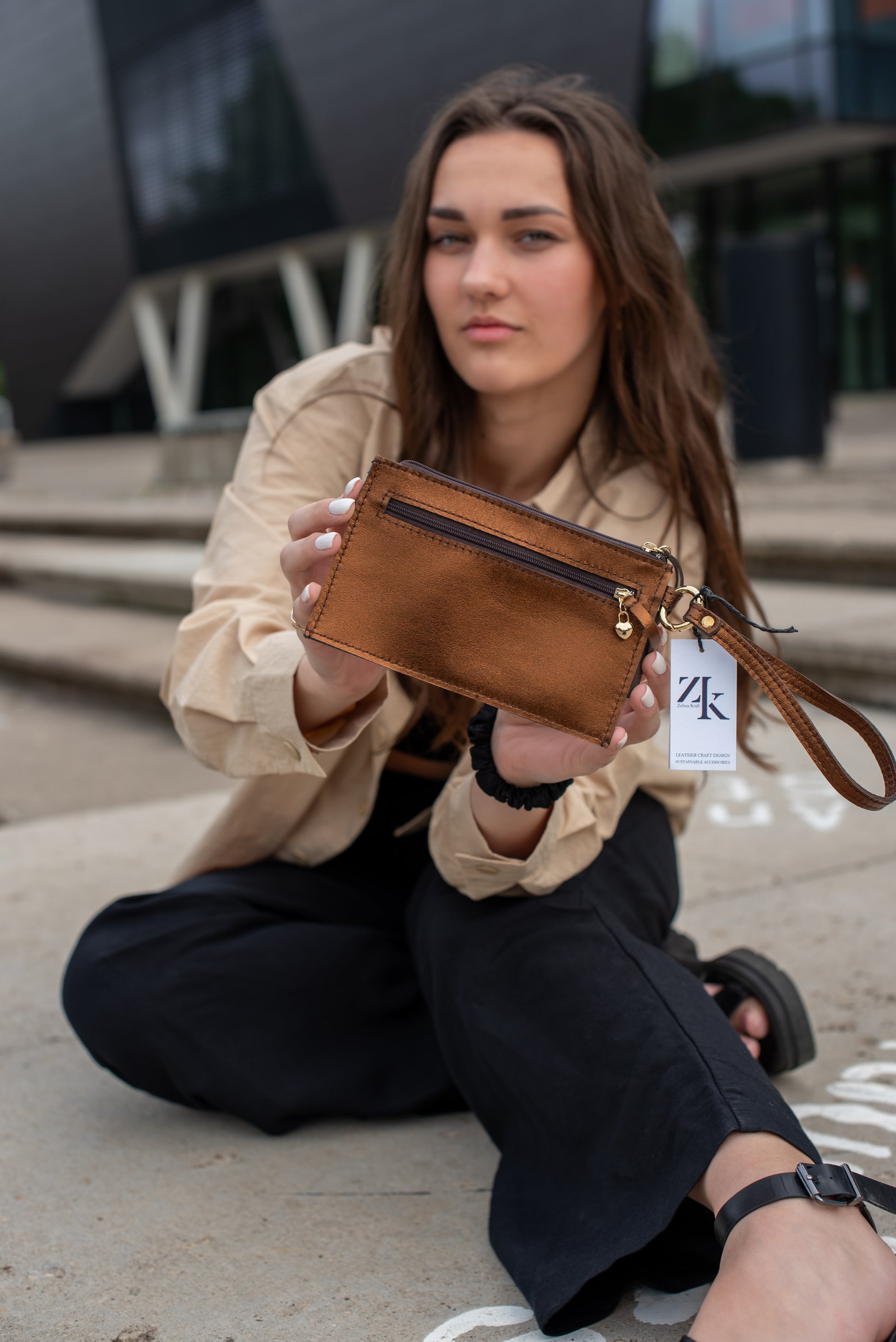 Rokas makam ir divas ārējās kabatas ar rāvējslēdzēju. Augšējās kabatas iekšpusē ir divas papildus kabatas kredītkartēm un sīkumiem. Īsā siksna nodrošina maka nēsāšanu uz plaukstas locītavas.