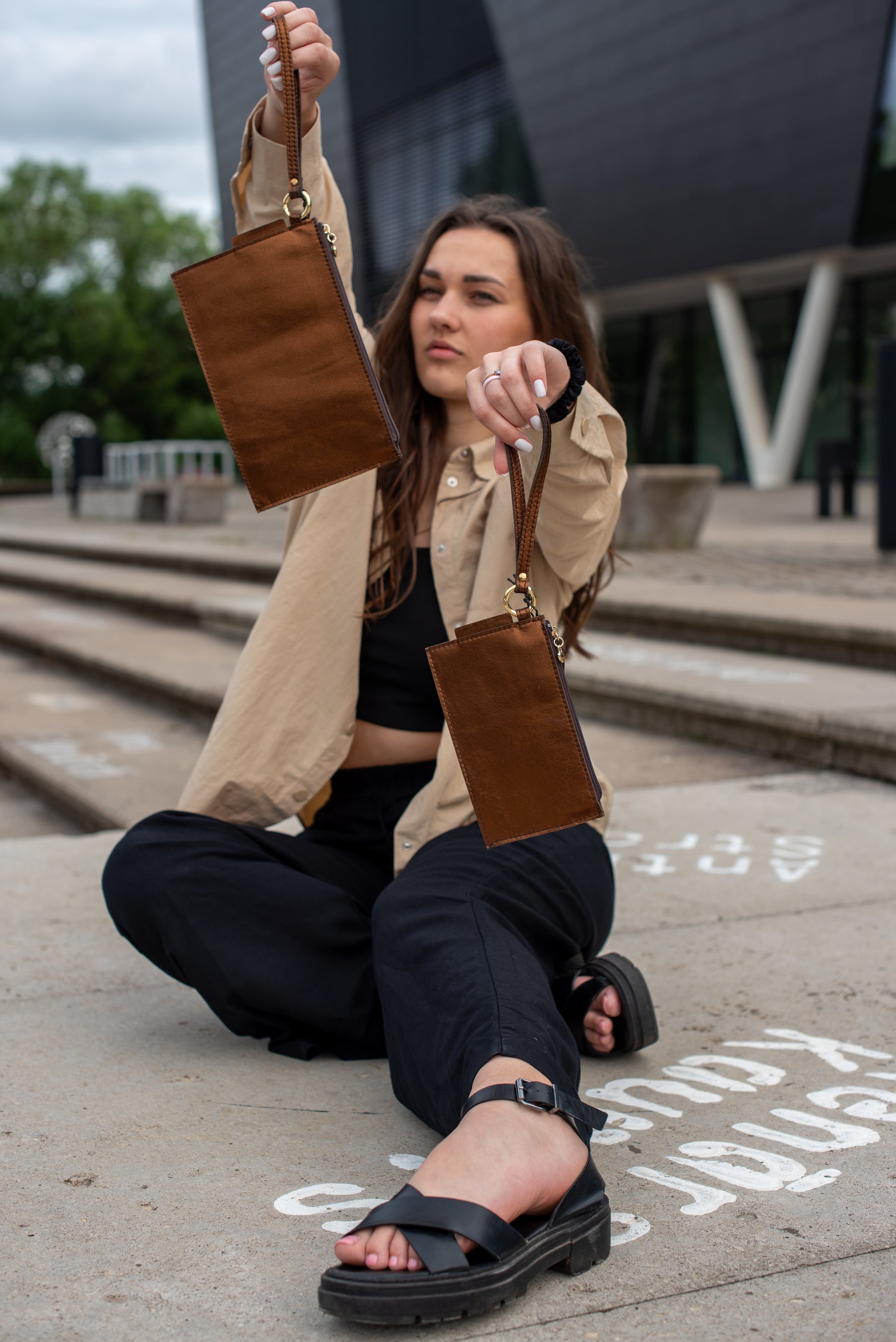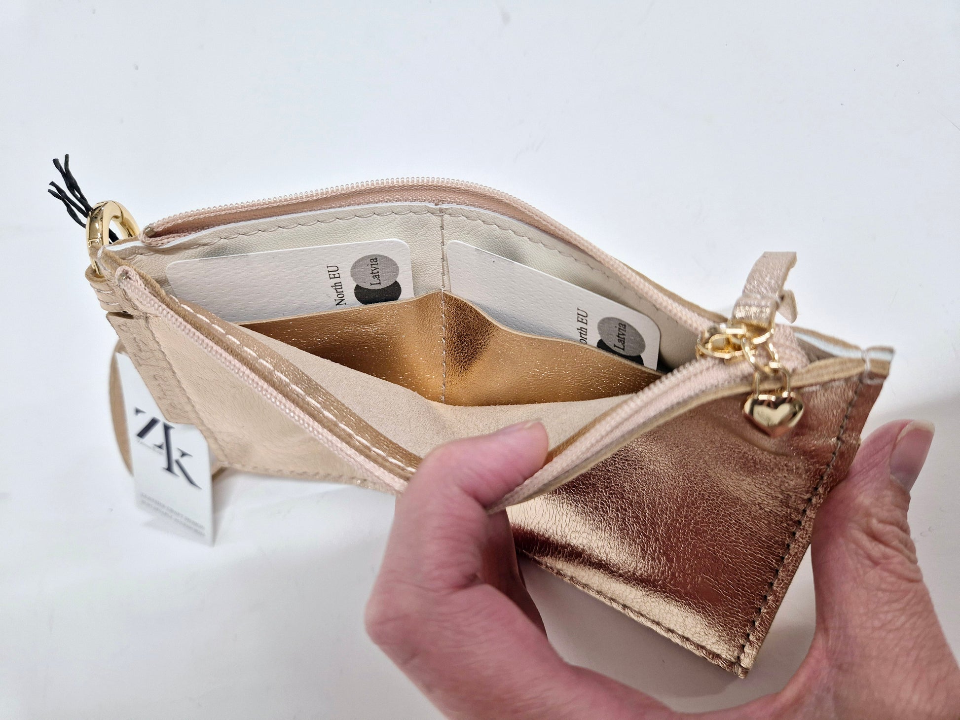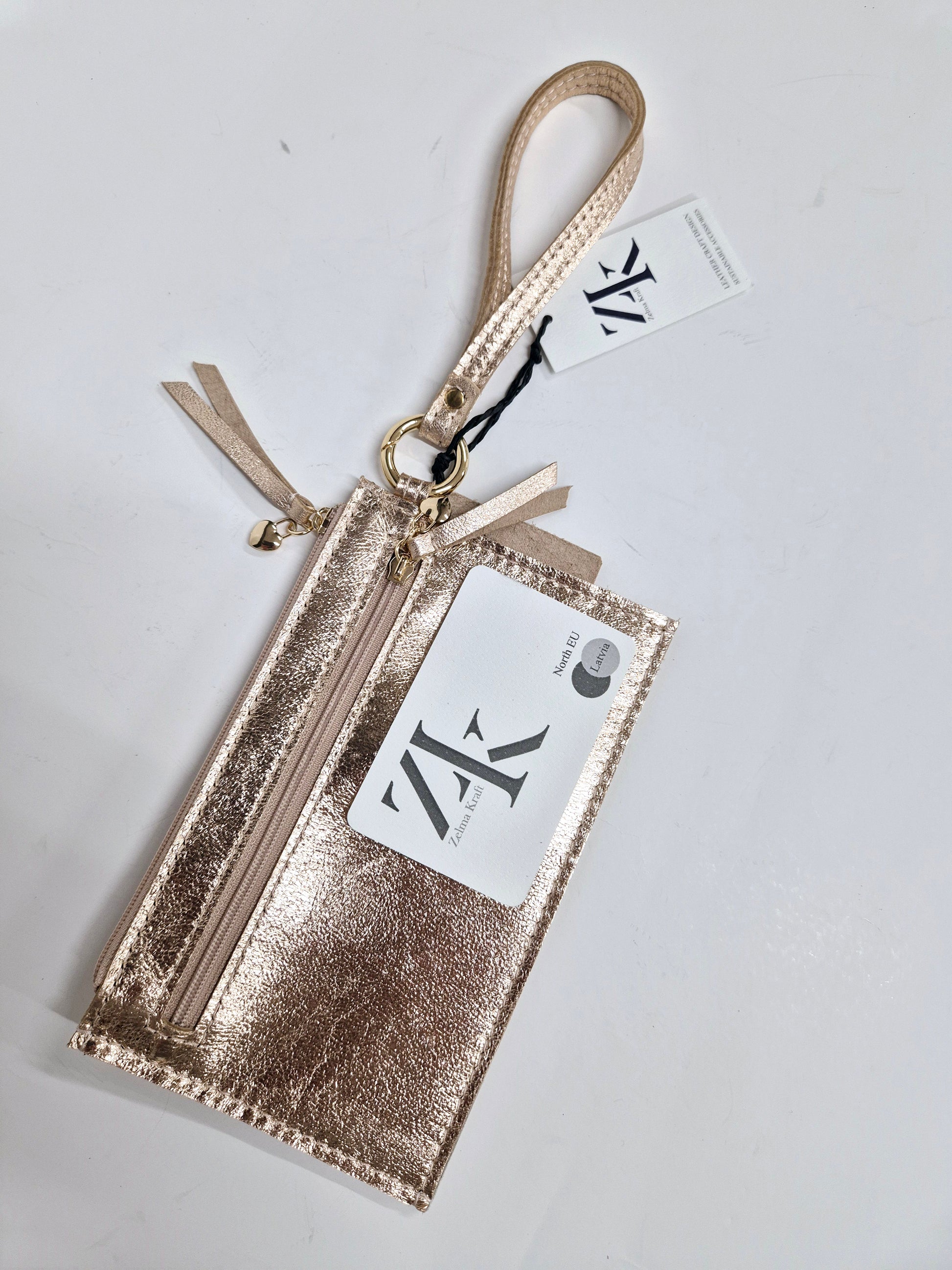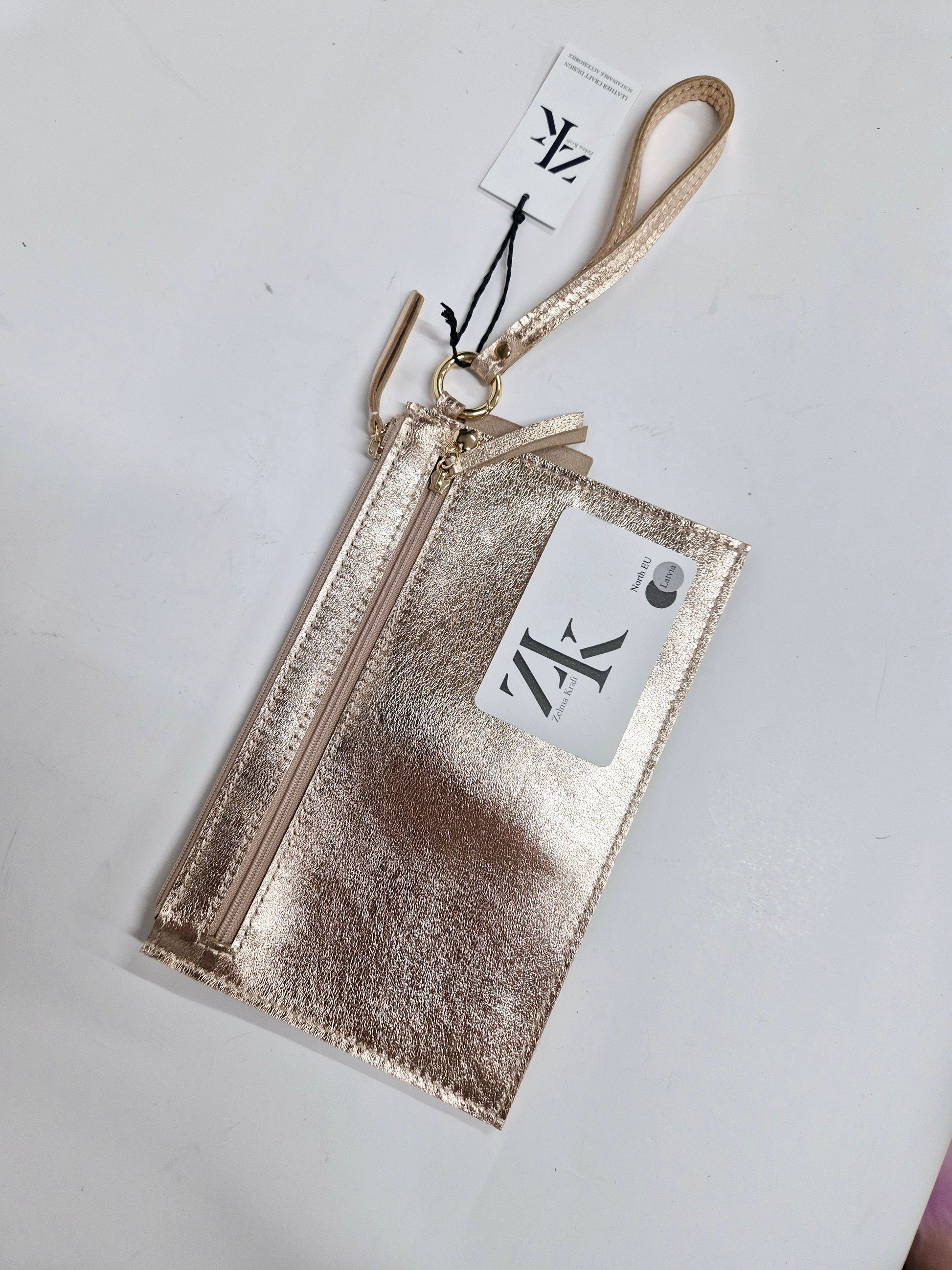 Rokas makam ir divas ārējās kabatas ar rāvējslēdzēju. Augšējās kabatas iekšpusē ir divas papildus kabatas kredītkartēm un sīkumiem. Īsā siksna nodrošina maka nēsāšanu uz plaukstas locītavas.